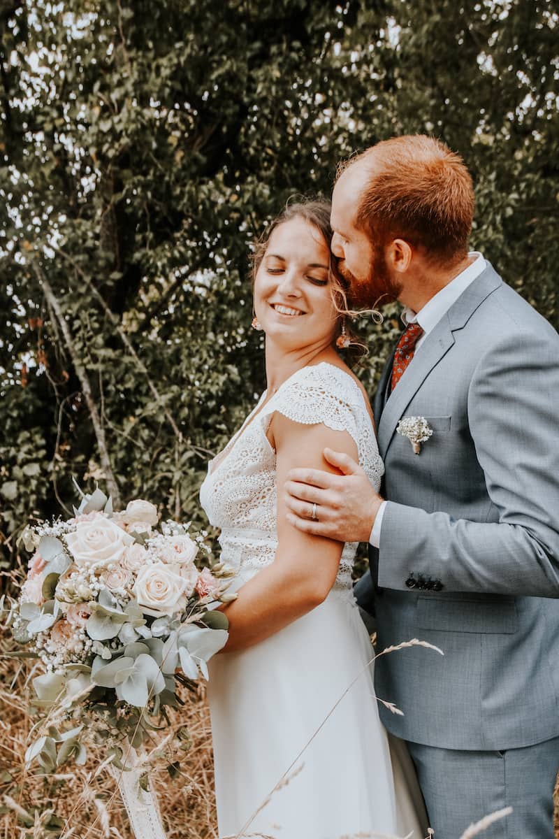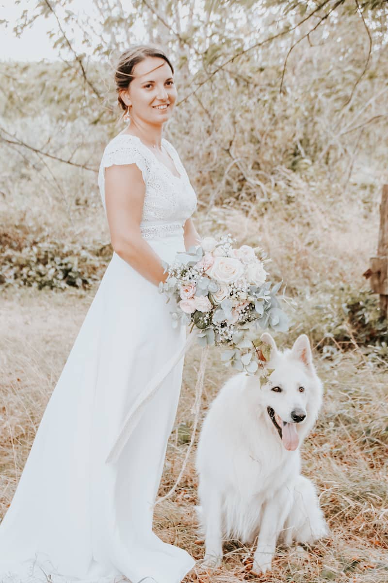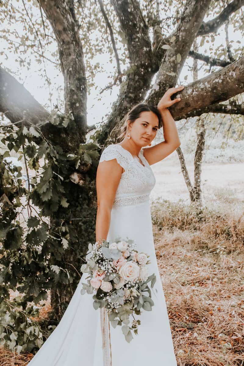 En couple depuis 10 ans nous avions prévu notre mariage le 23 mai 2020 avec 150 invités et une cérémonie laïque. Malheureusement nous avons été obligés de changer de date et de réduire le nombre d’invités et avons organisé un mariage en famille dans un gîte familiale. Après plusieurs essayages, je suis allé chez Mariage couture à Nemours (77) distributeur de la marque Elsa Gary. Coup de cœur pour la robe Malaga sur le site internet mais la robe n’était pas disponible en magasin. Je me suis donc déplacée à Paris pour l’essayer. Une fois enfilée, je ne voulais plus la quitter et je savais que c’était celle qu’il me fallait pour le grand jour.