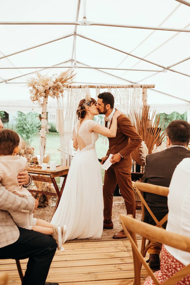 Malheureusement pour nous la pluie était présente pour notre joli jour… Mais elle n’a pas entaché notre journée pour autant. Nous avons fait le mariage de nos rêves malgré les restrictions, malgré la pluie. Pour nous le meilleur souvenir sera sans doute le sourire, la bonne humeur de nos invités. Le bonheur de se retrouver enfin pour notre joli jour tant attendu!
