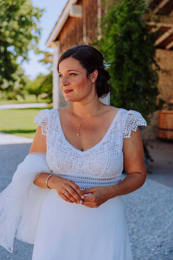 Je cherchais une robe simple, un peu bohème et chic. J’ai ainsi repéré la marque Elsa Gary sur internet. J’ai pris rendez-vous dans le magasin MademoiselleM à Bordeaux qui proposait des modèles Elsa Gary. J4ai essayé trois robes de la marque. Quand j’ai enfilé Séville, j’ai su que c’était celle-ci. Ca a fonctionné entre elle et moi. Robe simple, chic, avec ce je ne-sais-quoi qui m’a tout de suite plu.
